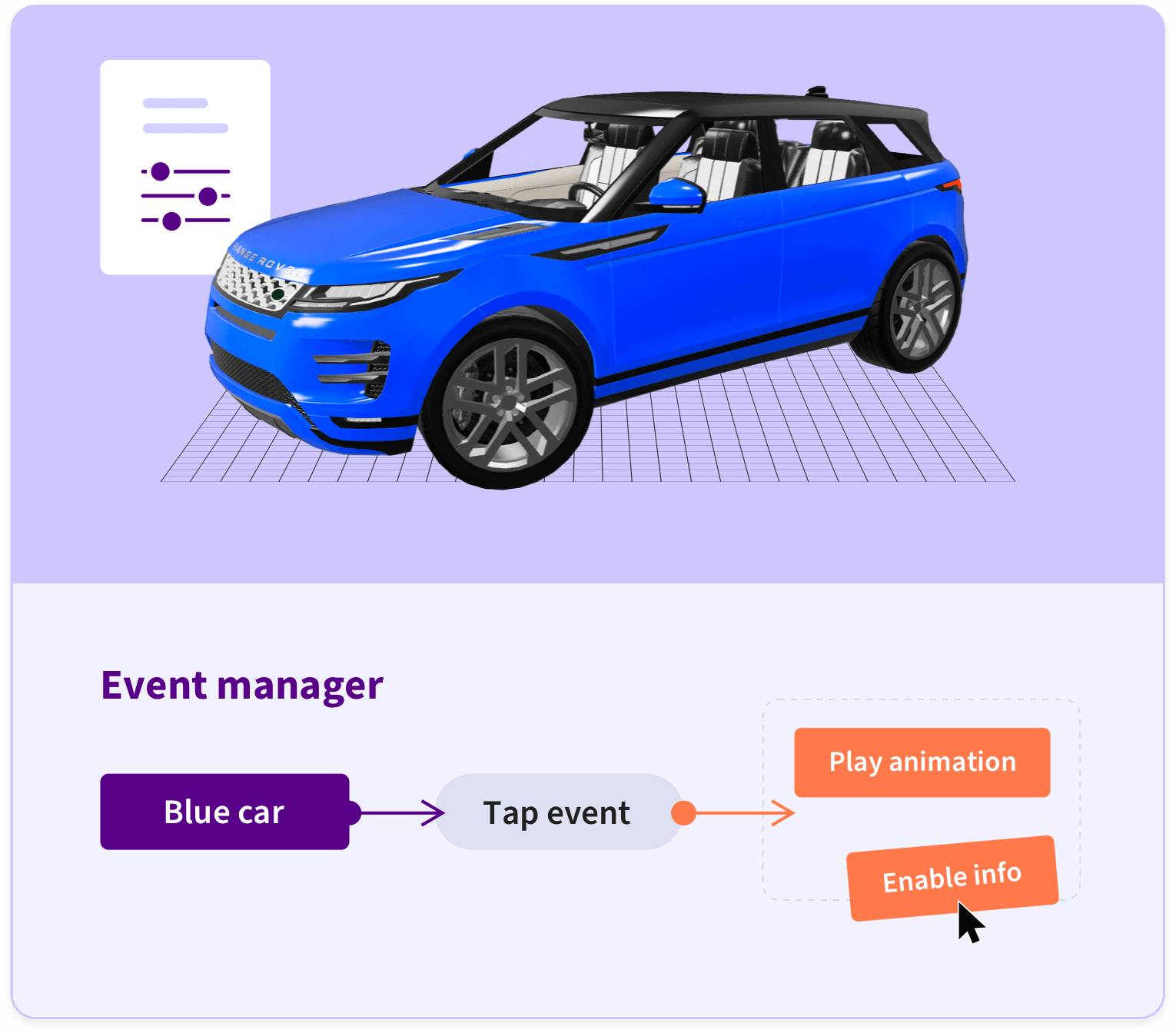 - Añade lógica, modificación del comportamiento de los elementos de la escena y conexiones a servicios externos y APIs. Accede al bloque de JavaScript para personalizar tus experiencias sin límites.